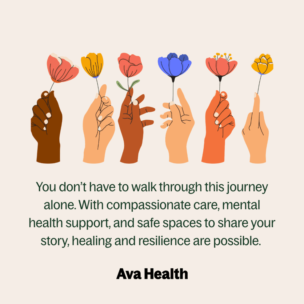 You don’t have to walk through this journey alone. With compassionate care, mental health support, and safe spaces to share your story, healing and resilience are possible. Give us a call at Ava Health, or schedule an appointment online. We’re here when you need it most.